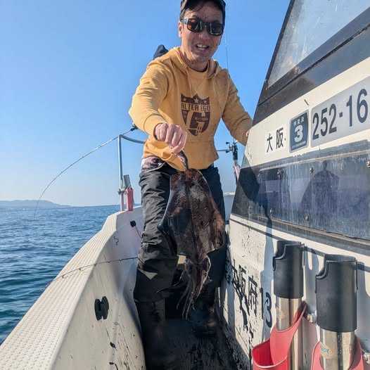 本日は淡路島でオモリグで御座います。 今日は中潮。 釣船熊人初のイカ釣り! 船内は墨だらけになってしまいましたが、釣れて何よりです。 釣果は2杯だけでしたが1キロ級のコウイカで華やいだ1日で御座いました(^^) -